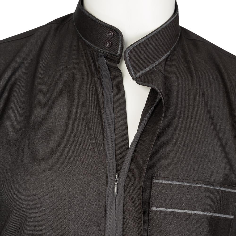 ثوب الأصيل سحاب شتوي مطرز رجالي أسود