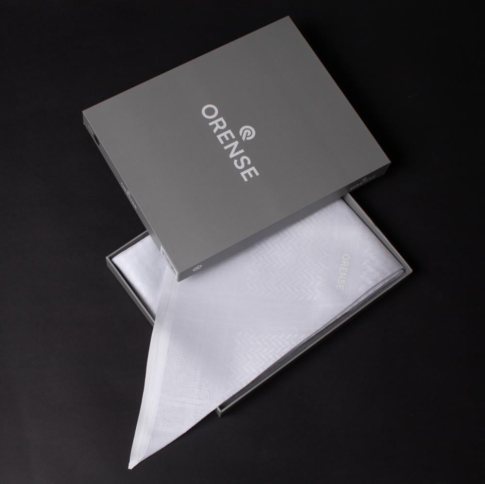 ارتقِ بمظهرك مع شماغ أبيض رجالي فاخر من Orense، الخيار المثالي للرجل الأنيق الذي يقدّر التفاصيل الدقيقة والجودة الرفيعة.